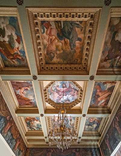 Живописный плафон «Похищение Европы» выполнен Игнатием Нивинским