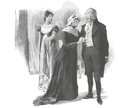 Несмотря на то что князь Василий неохотно и почти неучтиво слушал пожилую даму и даже выказывал нетерпение, она ласково и трогательно улыбалась ему и, чтоб он не ушел, взяла его за руку.