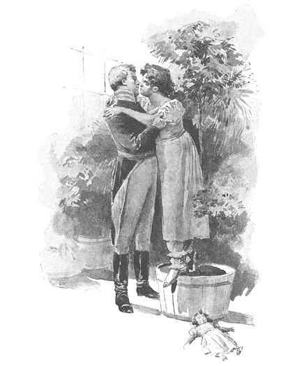 Она смутилась, оглянулась вокруг себя и, увидев брошенную на кадке свою куклу, взяла ее в руки.