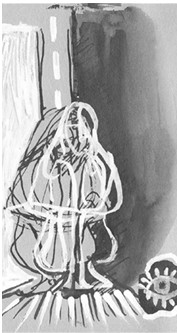 Профессор на цыпочках подкрадывается к спящей Лизе, склоняется над ней, касается губами ее потного лба. Осмелев, он целует ее в пунцовую щеку и, пристыженный, возвращается на место. Эстетика соблазняет этику, толкает на безобразный с точки зрения морали поступок.
