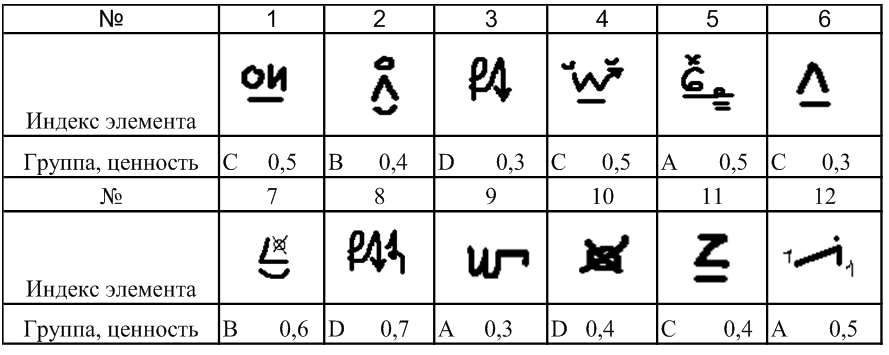 Протокол регистрации элементов сложности (расположение, группа, ценность)