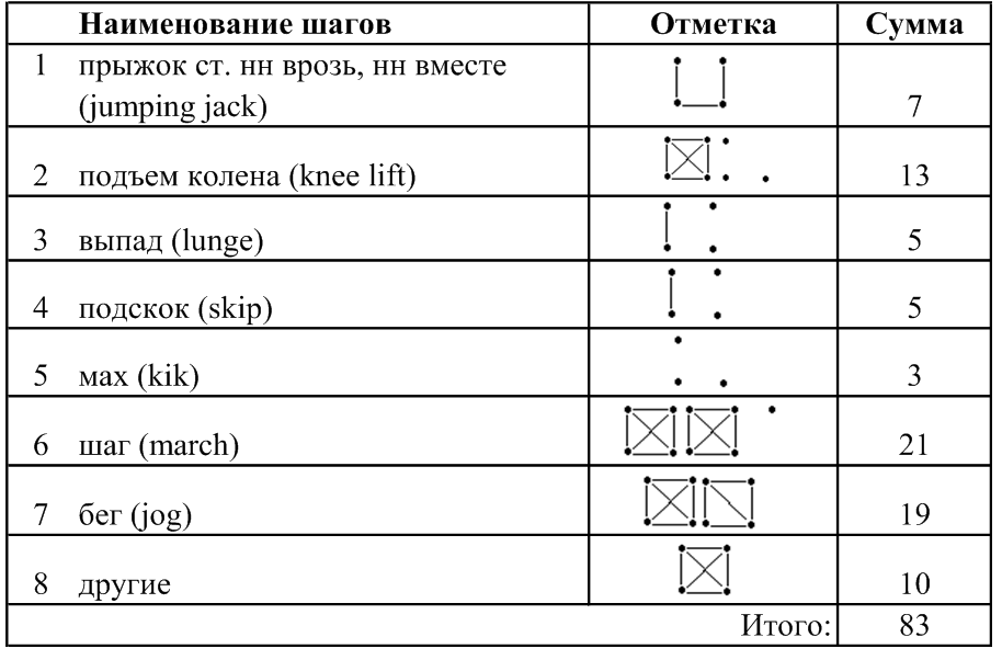 4. Подсчитать количество базовых шагов (табл. 6).