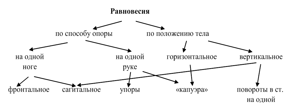 Равновесия в СА – это группа статических элементов с удержанием точного положения тела не менее двух секунд. Равновесия в СА можно классифицировать по двум признакам: по способу опоры и по положению тела в пространстве (рис. 14).