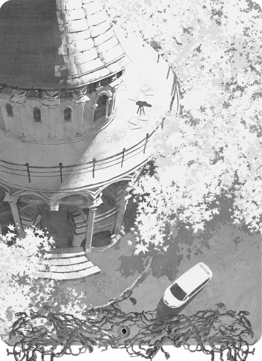 Добравшись до балкона, Йося перевалился через сетчатое ограждение и пропал из виду. Полина сильнее сжала бинокль, невольно отсчитывая секунды. Двадцать, сорок, минута. Балкон уходил вглубь, а нижняя часть башни нависала над ним, как большой круглый козырек. Полина все ждала, что компаньон сейчас выглянет из тени и даст знать, нашел дверь или нет. Но тот не появлялся.