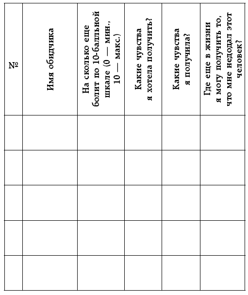 После заполнения таблицы ваши мысли и чувства будут нацелены на выздоровление и освобождение от обиды.