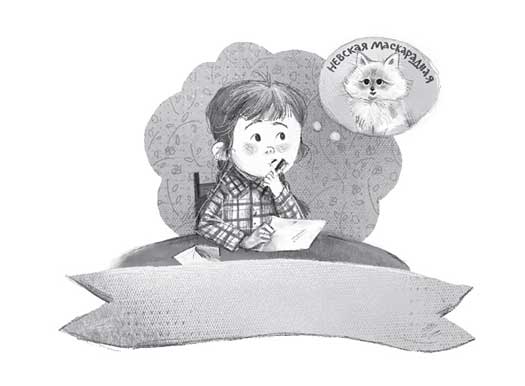Тая задумалась: а какого котёнка она бы хотела? Чёрного, как воронёнок, или смешного рыжика? «Невская маскарадная», – вдруг вспомнила она подпись под фотографией в журнале. С картинки на неё смотрели смешные малыши с разноцветными носиками и лапками. «Неужели они ходят на маскарад?» – удивилась Тая. И сразу представила себе, как кошки каждый вечер собираются, пудрят носы, надевают перчатки, маски и отправляются на бал.