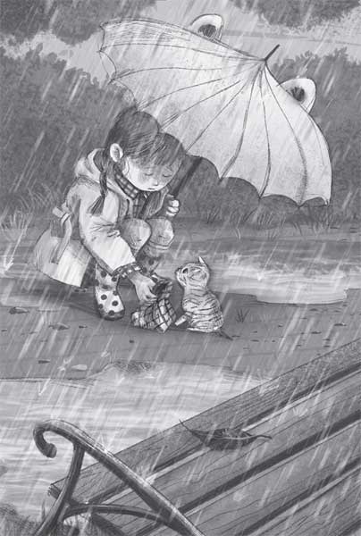 – Бедняжка! Ты же простудишься! – ахнула Тая. – Сейчас, сейчас. – И стала вытирать его носовым платком. Рыжик сразу прекратил плакать и замурчал, как будто внутри у него включился маленький моторчик. А потом стал ласкаться, подставляя Тае свои худенькие бока.