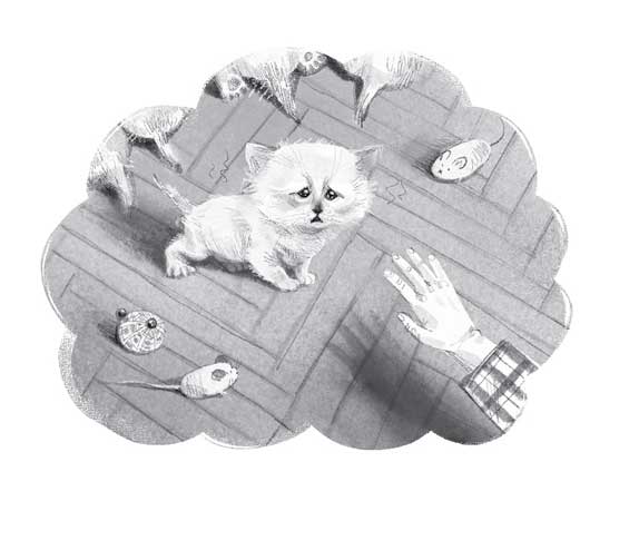 Котят там и правда было много. И чёрные, и белые, и рыжие. Самых разных пород. Они прыгали, кувыркались или просто спали. Тая стала к ним приглядываться. Вон беленький, как Пушинка. А этот прыгает ну точь-в-точь как она. А тот смешно открывает ротик. Увидев, что Тая заинтересовалась, к ней подошла продавщица с высокой причёской.