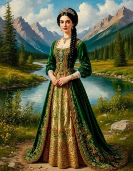 Взгляд опустила, а девичьи косы —