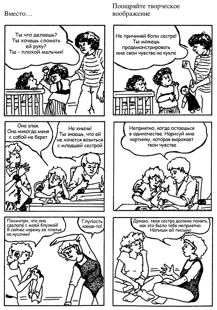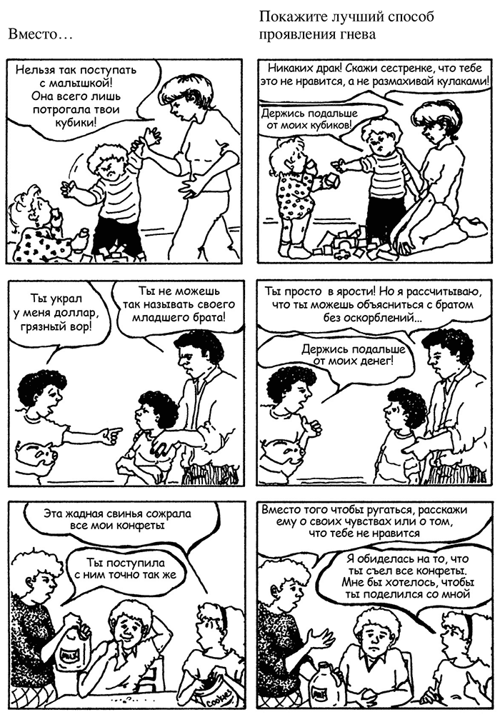 – Следует различать возможность высказывать чувства и возможность действовать, – ответила я. – Мы разрешаем детям высказывать все свои чувства, но не позволяем им причинять друг другу боль. Наша задача – научить их выражать свой гнев, не причиняя боли.