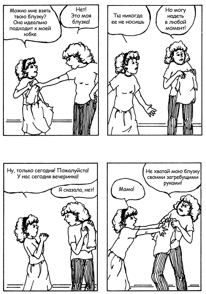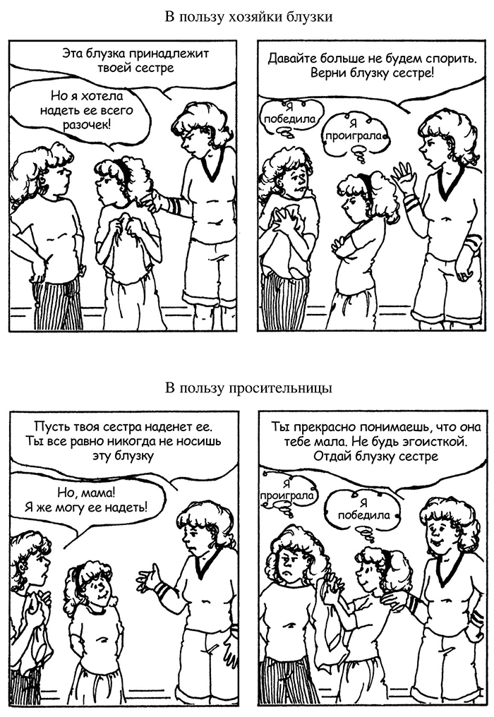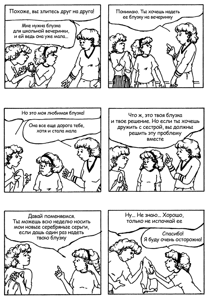Не все дети умеют находить решения, но это не беспокоило родителей. Сам процесс поиска взаимно приемлемого решения снимал напряженность в отношениях между братьями и сестрами.