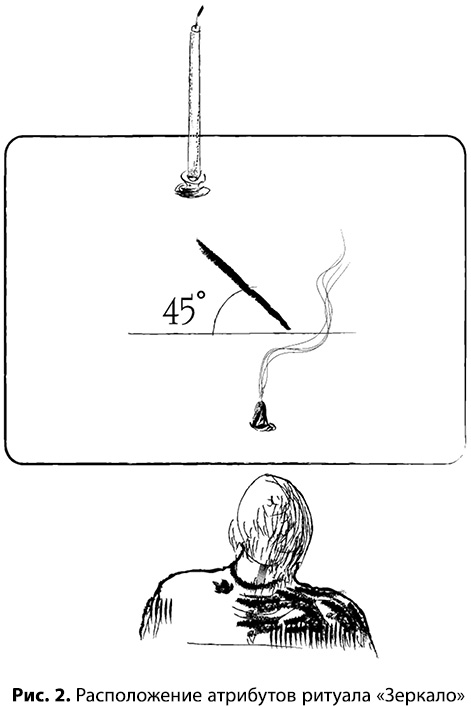 Потом возьмите черный бархат и полностью накройте им зеркало. Затем возьмите все еще горящую свечу и трижды обведите ее вокруг своей головы против часовой стрелки (примерно на уровне лба). Сделав три круга, свечу остановите перед лицом, спустите на уровень горла и медленно опустите ее вниз, до самых ног (при этом, конечно, наклоняясь). Далее потушите свечу руками и отложите ее.