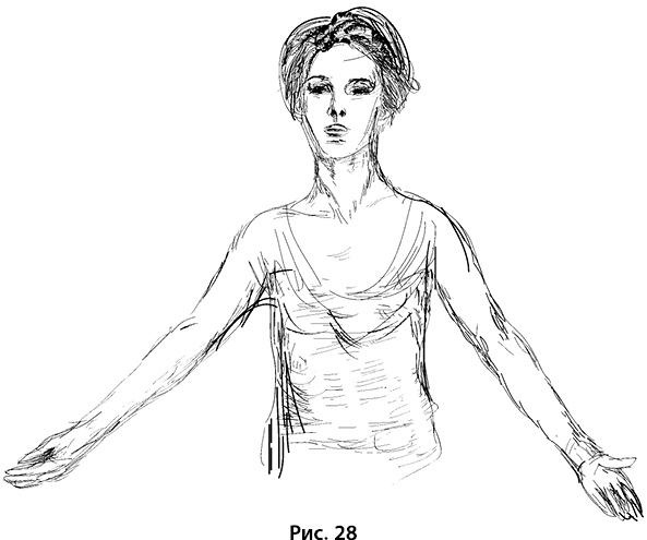 В точке открытого портала расположитесь в удобной вам позе – напротив воды, сидя в позе лотоса или стоя. Войдите в Альфа-состояние и направьте в сторону Воды раскрытые ладони, как бы давая ей себя (руки при этом находятся внизу – как на рис. 28), при этом произнесите: