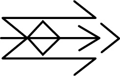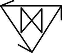 Три руны Лагуз посылают энергию против часовой стрелки, а Дагаз в центре производит преобразование отрицательной энергии в положительную. Этот знак я рекомендую начертить заряженной водой на каждой чакре человека, нуждающегося в чистке. Если нет палочки – чертите пальцем. Или можно добавить воду, оставшуюся после зарядки проводника, в чернила, и ими уже чертить знак на амулете.