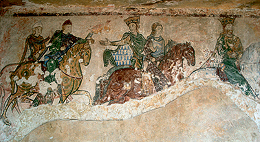 Настенная роспись из церкви Святой Радегунды в Шиноне, на которой предположительно изображены Плантагенеты с коронованной Алиенорой Аквитанской в центре