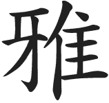 Первоначально эта идеограмма означала «быть правым» или «играть на музыкальном инструменте и петь в правильной тональности». Затем значение изменилось на «грация» и «элегантность». Этот канжи будет особенно стильно смотреться на вашем плече и любой другой части тела.