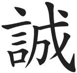 Эта идеограмма означает «правда», а также «искренность» или «правдивое сердце». В фильме Нагиса Ошимы Табу организация самураев Шинсенгуми, охранявшая правительство Токугавы, использовала эту идеограмму в качестве своего боевого символа.