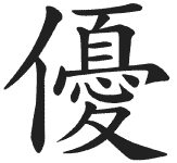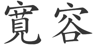 Эта идеограмма состоит из двух частей: иероглифа, символизирующего «человека», и иероглифа, означащего «чувствовать грусть и горе», и говорит о том, что человек, способный грустить, имеет доброе сердце.