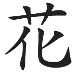 Этот канжи означает цветок. Мимолетная красота цветущей сакуры, сияющей ярко, но недолго, до того, как ее лепестки опадут или будут унесены ветром, выражает идею перемен и является символом эстетического вкуса. Сэйгиё, японский поэт, живший в уединении на горе Йошино, писал: «Я хотел бы умереть под цветущей сакурой / На полнолуние в феврале / Когда Будда достиг нирваны».
