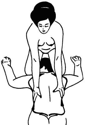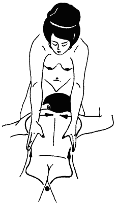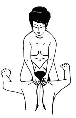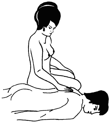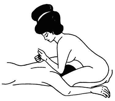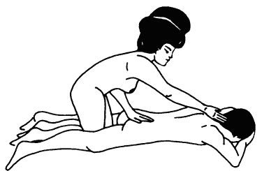 Гейша гордилась своим умением делать массаж. Она использовала свои знания эрогенных точек, начиная с пупка и двигаясь дальше вверх и вниз от него, к его груди, губам, лбу, затылку головы и шеи такими движениями, чтобы доставить ему величайшее наслаждение. Она могла свести мужчину с ума прикосновением своих пальцев.