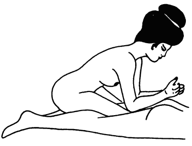 Положите руки по обе стороны крестца, пальцы направлены в сторону головы. Затем подушечками больших пальцев, попеременно левым и правым, надавливайте и растирайте небольшую область чуть выше крестца. Выполняйте надавливающе-растирающие движения монотонно, с небольшим давлением в течение некоторого времени. Чем легче будут ваши движения, тем более сильным будет возбуждение.