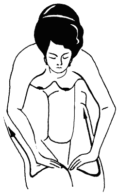 Затем, на крестце, положите каждую руку по обе стороны на бедра. Приемом растирания двигайте руки вверх по телу к подмышкам. При движении рук вверх большие пальцы массируют спину, остальные располагаются с наружной части ребер. Когда вы достигнете подмышек, снова соедините руки над лопатками, как в начальной позиции. Повторите прием несколько раз.