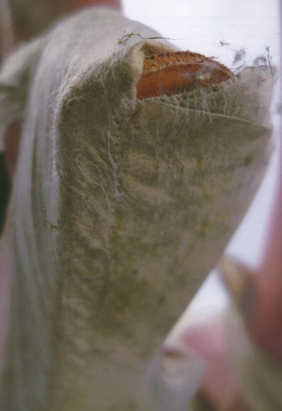 В ходе моего исследования я изготовила, надевала и ходила в нескольких парах обуви, повторяя практику производства, использования и ношения. Эти туфли – арт-объекты, «сделанные» в процессе ношения, – были спроектированы таким образом, чтобы как за счет выбора материалов их создателем, так и за счет дизайна их формы усилить и расширить взаимодействие владельца с миром. Многие из пар туфель, произведенных и носившихся на протяжении всего этого исследования, имели ярко выраженные заостренные или удлиненные носки. Выбор такой формы в некоторой степени определялся эстетикой (или влиянием моего личного вкуса); однако также эти решения были концептуальными, относящимися как к желаемому визуальному эффекту произведений, так и к тому, как обувь может вести себя во время ношения. Расширяя и удлиняя стопу, а следовательно, и схему тела и границы тела, я, как владелец и исполнитель, дальше проникала «в мир». Носки ботинок быстрее истирались, а подошвы большей площадью поверхности вдавливались в грязь дорог. Мое одетое тело двигалось впереди меня, мои туфли выступали за пределы стопы. Туфли быстрее изнашивались и теряли презентабельность; они ускоряли и усиливали мое взаимодействие с миром. Загнутые носки и потертости, появившиеся в результате ношения, – это показательные отпечатки моего исследования, они являются следами проведенного исследования. Одиноко стоящие туфли – это запись отсутствующего перформанса, жестов, которые зритель не увидит, ведь для него останутся только их следы, следы на обуви. Расширение схемы тела, выталкивание меня в пространство, стало средством исследования, способом приблизиться к границам и порой их преодолеть.