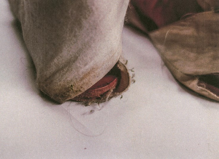 Исследование было направлено на изучение привязанности, которую люди испытывают к своей одежде; способов, которыми благодаря тактильному взаимодействию вещи становятся частью нашего физического и психического «я». Поместив свое исследование в рамки нового материализма и исследований материальности, доминирующего в течение последнего десятилетия направления исследований в области социальных и гуманитарных наук, я поставила вопрос о том, можем ли мы, рассматривая материальные последствия износа и опыт ношения, выработать более глубокое понимание наших отношений с обувью. При этом я предположила, что привязанность к обуви проистекает не просто из потребления, статуса или желания, а из устойчивых тактильных отношений, развивающихся в результате ношения. В литературе о моде обувь часто интерпретируется как признак идентичности или как маркер культурного или социального капитала, соответственно, в этих обсуждениях реальная обувь, обувь как привычный, носимый и телесный объект не фигурирует. Однако, вместо того чтобы опираться на социологическую методологию, основанную на объектно-ориентированных интервью (Woodward 2015; Chong-Kwan 2017), включенном наблюдении (Кларк, Миллер 2010) или на исторических исследованиях архивных объектов, в этом исследовании я использую процессы ношения и использования для изучения привязанности и отношений владельцев с обувью: перед вами исследование материальной культуры, проведенное посредством создания произведений искусства. Результатами моего практического исследования стали артефакты, изображения (инсталляции, видеозаписи и фотографии) и текст.