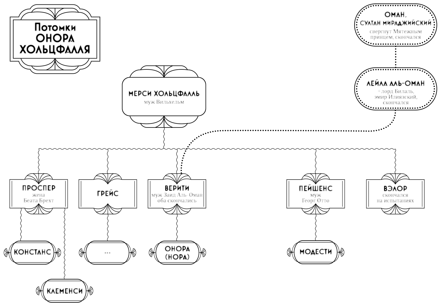 Однако Нора больше не была Наследницей Хольцфалль. Строго говоря, этот титул никогда ей не принадлежал, что бы там ни писали в газетах. Она была лишь наследницей Наследницы. Но теперь Наследницы не стало, и никто не мог с уверенностью сказать, что Нора однажды займет место главы семьи. Она оставалась лишь одной из внучек Мерси Хольцфалль.