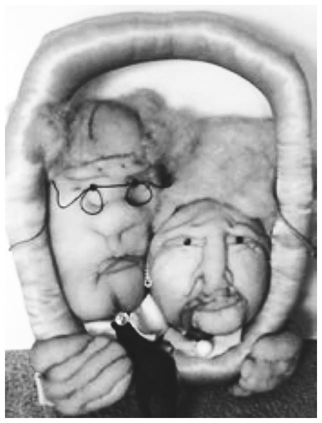 Затем я обратилась к мягкой скульптуре, создавая рамки из атласного материала, внутри которых помещались изображения людей, сделанные из набитых и сформованных колготок.