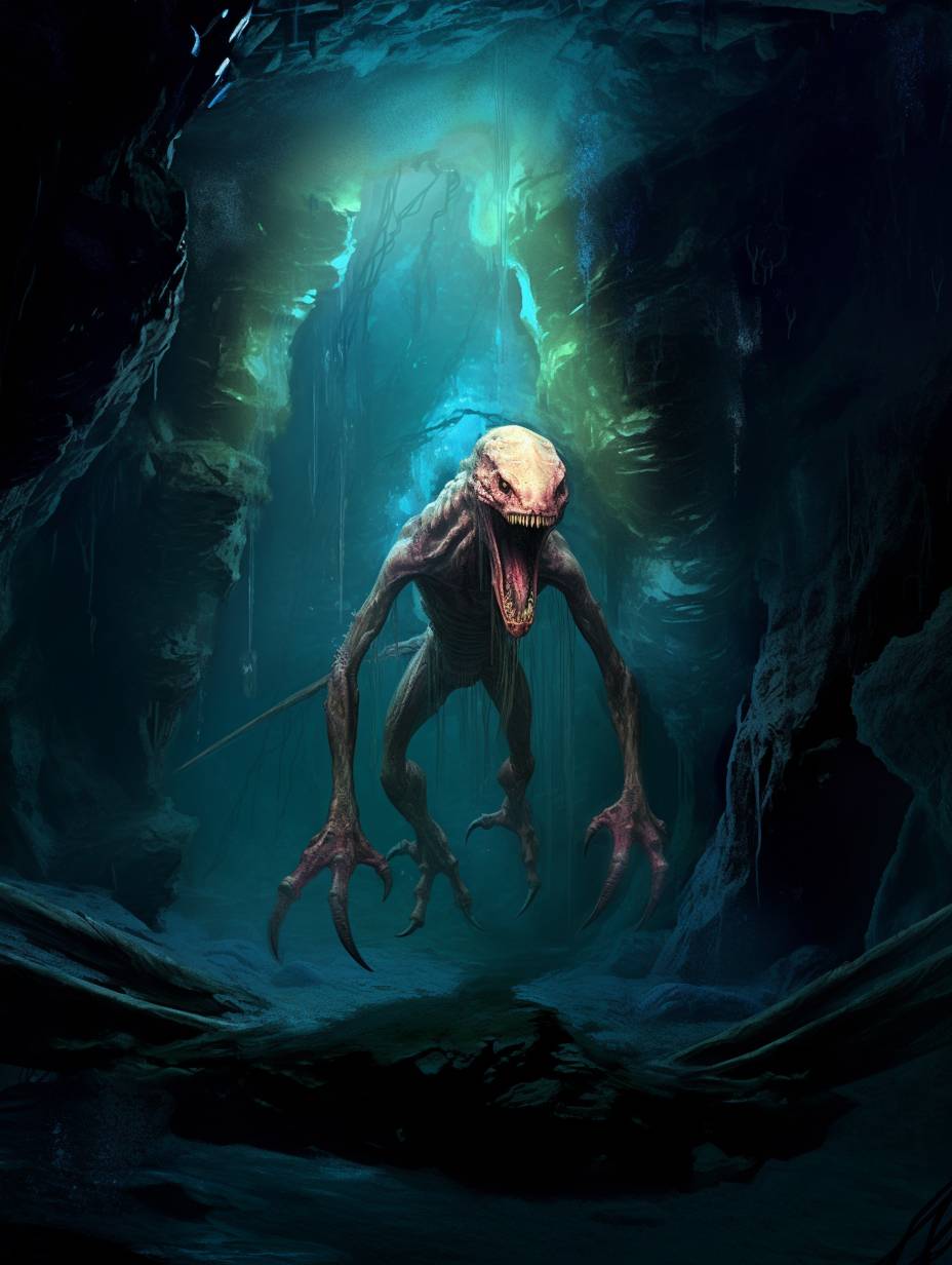 Худое, обтянутое землистого цвета кожей, существо перемещалось прыжками. Огромные когти на лапах при приземлении не царапали землю и не ломались, тварь умудрялась так выгнуть конечность, чтобы не повредить своё основное орудие убийства. Покатая, вытянутая голова и отсутствие шеи делало существо похожим на смесь ящерицы и человека. В согнутом состоянии монстр был немного ниже человека, а вот в выпрямленном… Длинный остроконечный хвост, похожий на негнущуюся палку, довершал эту ужасающую картину. Тварь снова оттолкнулась от земли, прыгая. Из приоткрытой клыкастой пасти вырвался едва уловимый человеческому уху звук, от которого тело Келлена стало мелко дрожать, но не от страха, а от странного воздействия, каким обладало это существо. Доли секунды, и монстр снова приземлился.