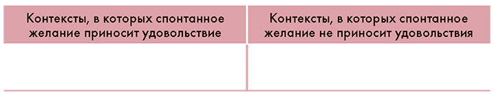 В этом упражнении вы проанализируете опыт спонтанного и ответного желания и рассмотрите, какие аспекты контекста способствовали одному или другому ощущению.