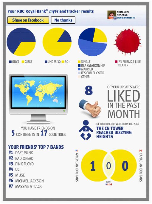 [Закрыть]. Это приложение опирается на данные Open Graph от Facebook, чтобы предложить интернет-пользователям создание инфографики в реальном времени, которая бы демонстрировала статистику, связанную с их контактами Facebook: возраст, семейный статус, …