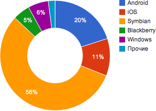 В России самой популярной платформой остается технологически устаревший Symbian. Однако устройства, его использующие, могут называться «смартфонами» с большой натяжкой.