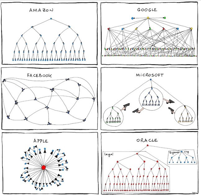 К новому пониманию предприятияЧто касается организации, ориентирование на социальный веб имеет важные последствия, принимая во внимание то, что классическая иерархическая модель начинает мутировать от изначального “top-down” (сверху вниз) до модели “bottom-up” (снизу вверх). Конечно, всё зависит от сектора, рынка, культуры и размера конкретного предприятия. Поэтому эволюция иерархии на предприятии не может быть равномерной. Если коротко, то новая ориентация на социальный веб означает примерно следующее: