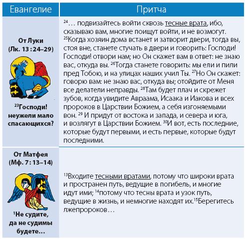 Во время путешествия Иисуса Христа в Иерусалим, когда Он проходил по городам и селениям и учил народ, некто, обратившись к Нему, сказал: «Господи! Неужели мало спасающихся?». Христос отвечал, что врата неба тесны, и нужно сделать усилие, чтобы войти в них[244]244