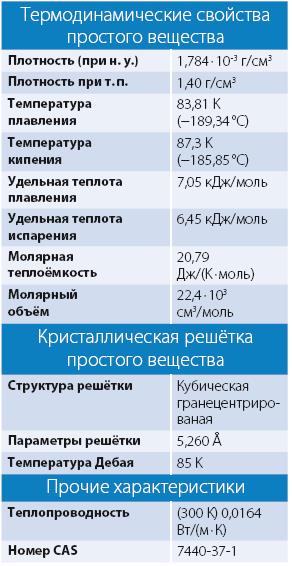 Вот данные об аргоне из Википедии (универсальной энциклопедии).