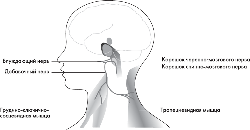 Еще один способ улучшить память – простимулировать блуждающий нерв (черепно-мозговой нерв, выходящий из ствола головного мозга и иннервирующий многие внутренние органы, в частности брюшной полости). Мои коллеги, врачи из Китая, сообщили мне, что биологически активная точка, в которой проводится массаж блуждающего нерва, находится в углублении на задней поверхности шеи. Потирание затылка и шеи – отличный способ стимуляции этой точки. Еще один метод воздействия на блуждающий нерв – сделать серию глубоких вдохов: это поможет вам расслабиться и успокоиться. Попробуйте произвести все вышеописанные операции, когда пытаетесь вспомнить что-то.