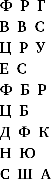 Ф Р Г В В С Ц Р У Е С Ф Б Р Ц Б Д Ф К Н Ю С Ш А