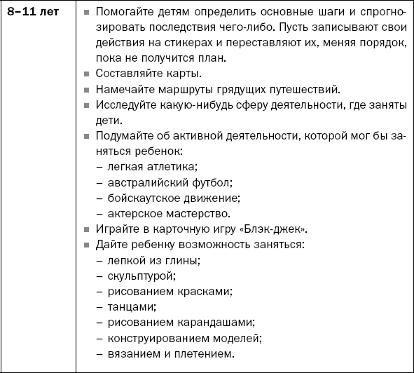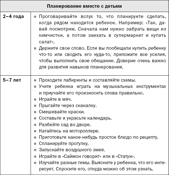 В Главе 4, посвященной развитию умения концентрировать внимание, мы говорили о том, что происходит в голове у ребенка. Теперь же, когда вы учите своего сына или дочь планированию, вам нужно подумать о результате. Выбрать действие, которое нужно предпринять, и закончить начатое дело несмотря ни на что – вот это важно для будущего гения.