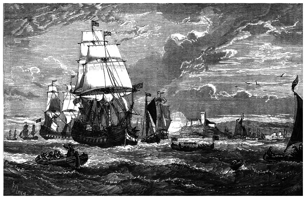 Корабли Британской Ост-Индской компании выходят из Вулиджа. Гравюра