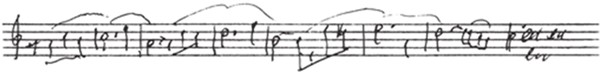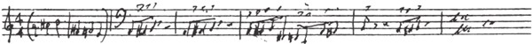 Это его произведение поразило меня до глубины души еще в студенческие годы. К восходящей хроматической последовательности из трех нот присоединяется еще одна хроматическая последовательность, но уже нисходящая: