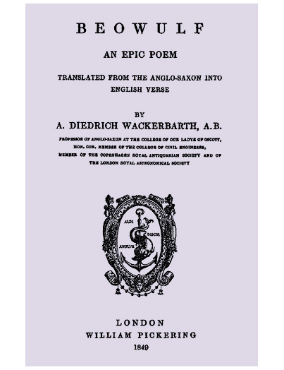 Wackerbarth, Athanasius Frans Didrik. Beowulf, an epic poem. London W. Pickering. 1849