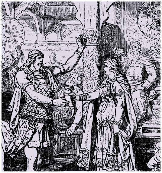 Благополучие героического общества полностью зависит от соблюдения освященных многовековой практикой норм поведения, подобающих как королю, так и его воинам. Король должен быть могуществен, щедр, мудр; воин – предан королю, отважен в битве. Одна из важнейших функций короля – раздача сокровищ. Именно поэтому столько внимания уделяется щедрости Хродгара и других правителей и описанию полученных героем даров. Щедрость является залогом справедливого, «правильного» распределения ценностей. Вторая функция правителя – защита своего народа, то есть дружины. Поэтому Хродгар, Хигелак, Беовульф наделяются определениями, выражающими идею защиты, покровительства: «защитник народа», «страж народа», «хранитель воинов», «пастух народа». И еще одно качество правителя регулярно отмечается в поэме – его мудрость, которая понимается не как интеллектуальное качество, а как неукоснительное следование существующим этическим нормам. Взаимный долг короля и его дружинников – это те узы, которые связывают героическое общество воедино, это основа основ его благополучия и жизнеспособности. Дружинники Беовульфа, не выполнившие свой долг, испугавшись дракона, порицаются Виглафом и станут изгоями (с. 2863–2890