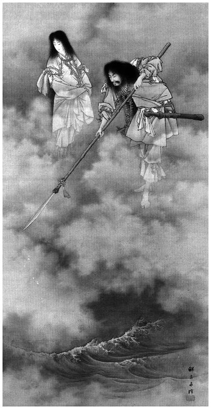 «Кодзики» утверждает, что именно первые небесные боги, таинственные и невидимые, поручили Идзанаги и Идзанами окончательно упорядочить мировой хаос.