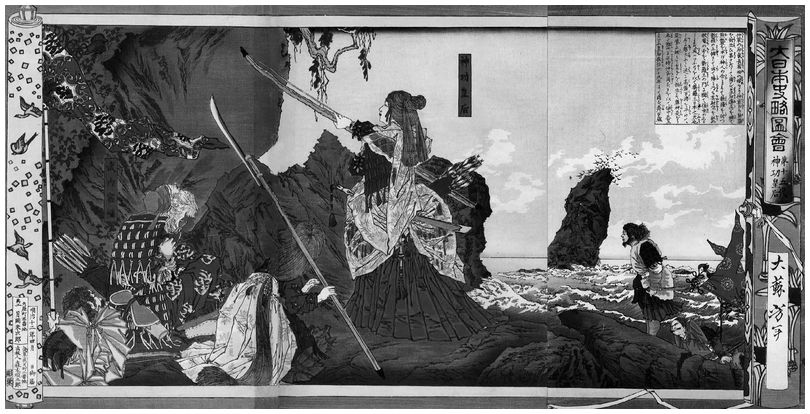 Императрица Дзингу и жители моряВ истории было множество военных столкновений между Японией и Кореей. Многие из них подтверждены историками, но часть этих военных конфликтов относится к разряду полулегендарных. В том числе и те, в которых якобы участвовала императрица Дзингу.