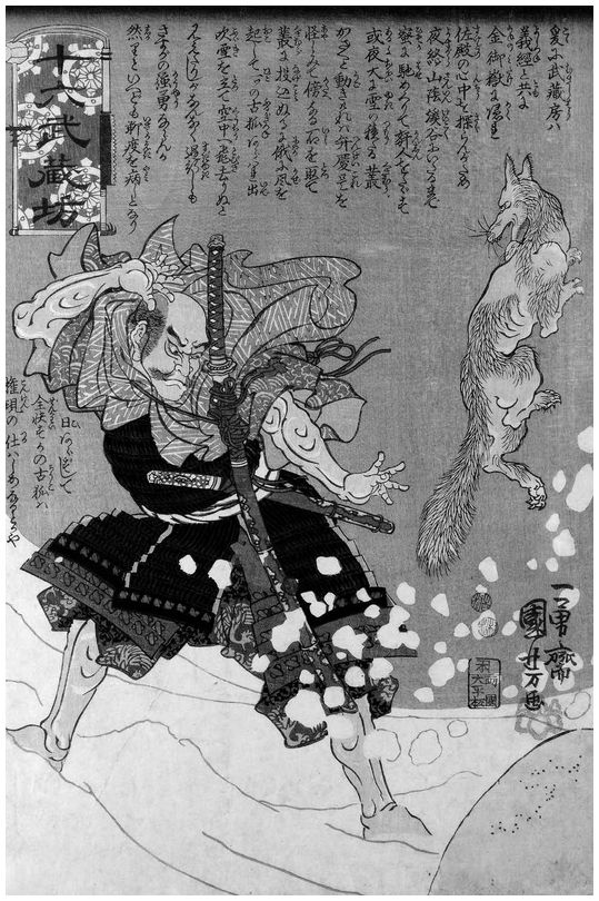 Утагава Куниёси. Бэнкэй и кицунэ. 1840-е гг.