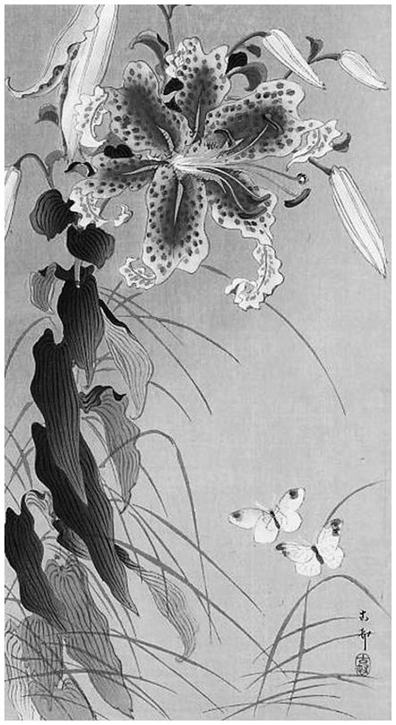 Косон Охара. Лилии и бабочки. Нач. ХХ в.
