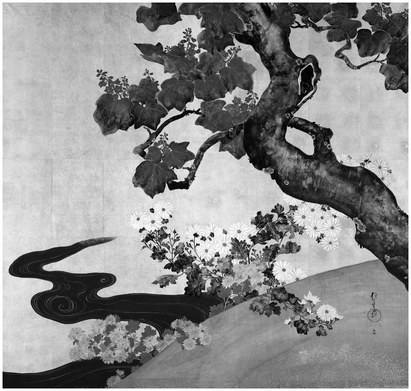 Сакаи Хоицу. Хризантемы и павловния. Кон. XVIII – нач. XIX в.