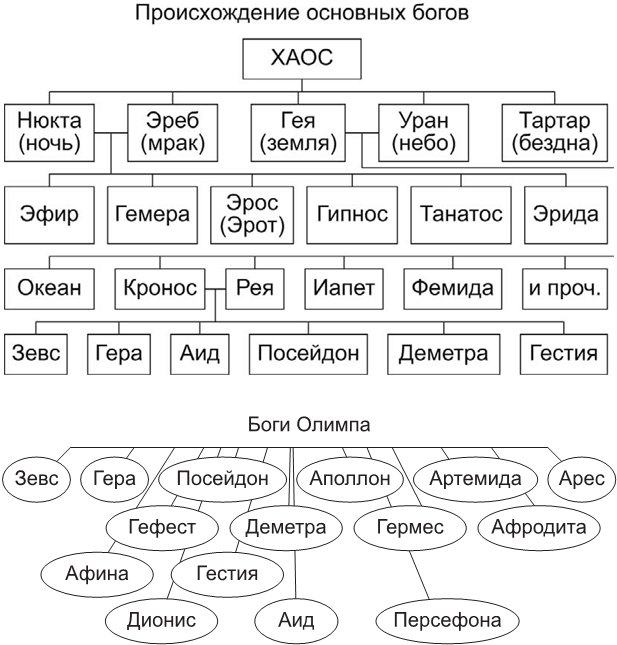 Большая дружная семья: началоКак и большинство народов древности, греки обожествляли разнообразные природные явления, стихии и небесные тела: свои божественные покровители были у грозы и ветра, моря и неба, солнца и луны. Каждое созвездие имело свою мифологическую историю, даже человеческие чувства и эмоции отождествлялись с тем или иным божеством. В Древней Греции верили в богов смеха и мести, печали и любви, ненависти и обмана. А еще там были сатиры, нимфы, гиганты, чудовища, циклопы. Мир древнегреческой мифологии невероятно пестрый, сложный и увлекательный. Но с чего все начиналось?